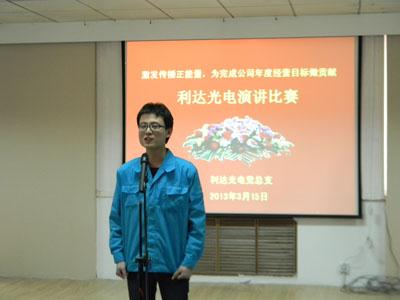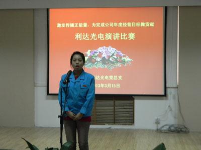 ??????? 為深入學(xué)習貫徹利達公司2013年經(jīng)營(yíng)工作會(huì )議精神,進(jìn)一步明確發(fā)展目標,統一全員思想,激發(fā)傳播正能量,推動(dòng)公司自我變革活動(dòng),在春暖花開(kāi)、充滿(mǎn)希望的季節,利達光電黨總支舉辦“激發(fā)傳播正能量,為完成公司2013年經(jīng)營(yíng)目標做貢獻”演講比賽活動(dòng)。