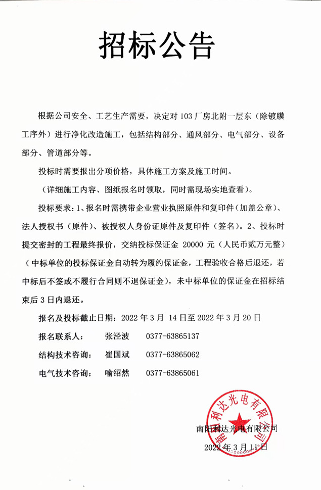 - (2022-09-29)光電新區三期廠(chǎng)房一層裝修施工的招標公告