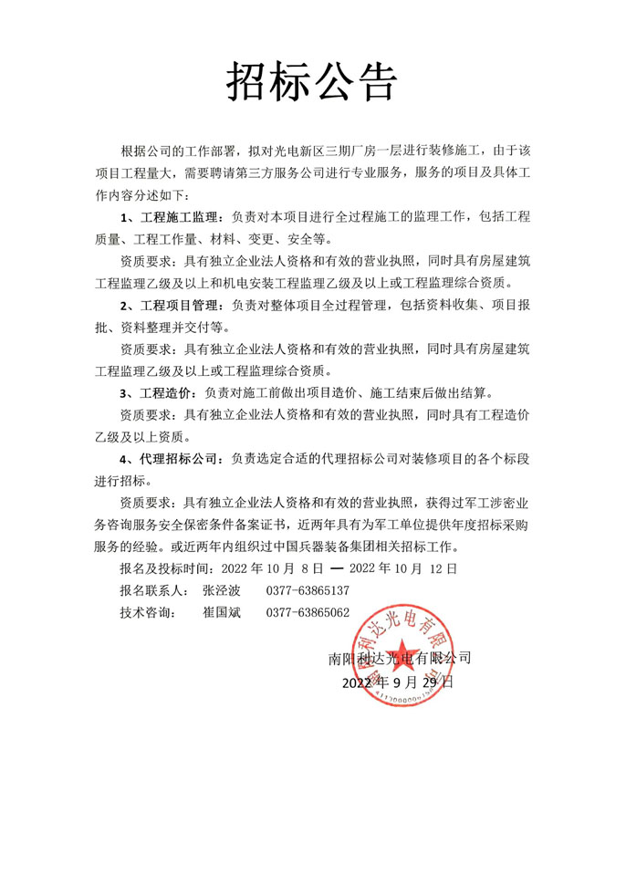 - (2022-09-29)光電新區三期廠(chǎng)房一層裝修施工的招標公告